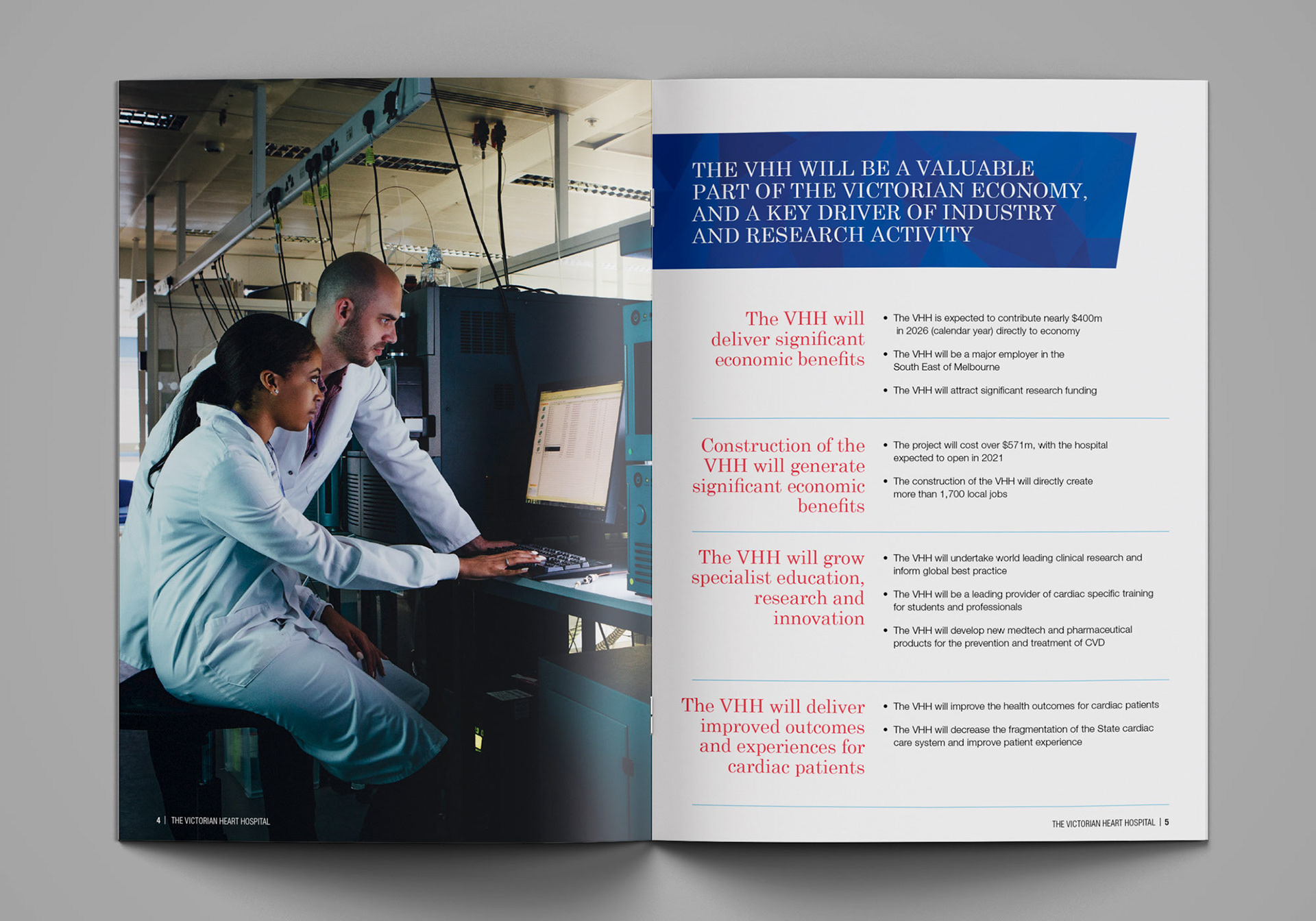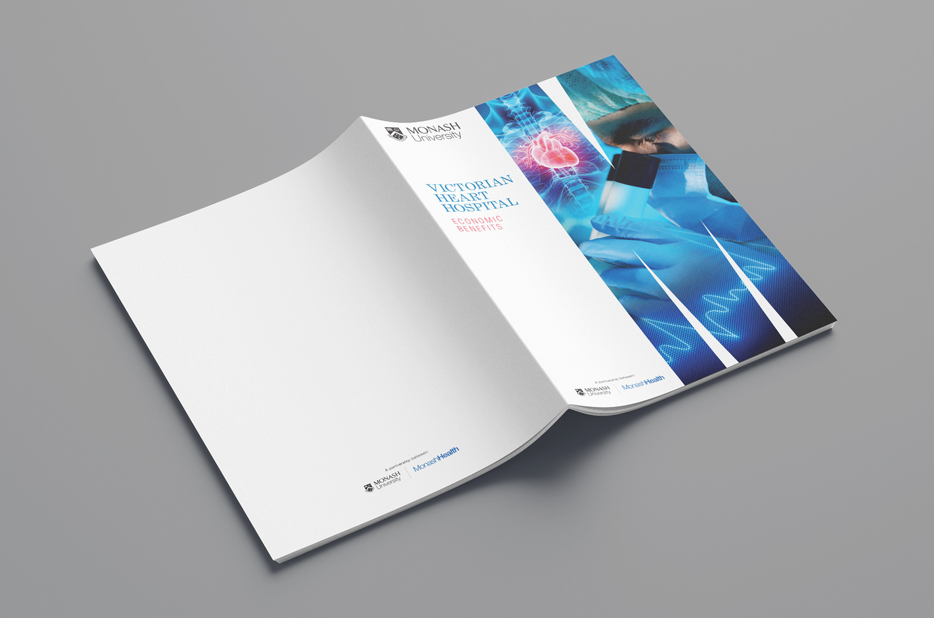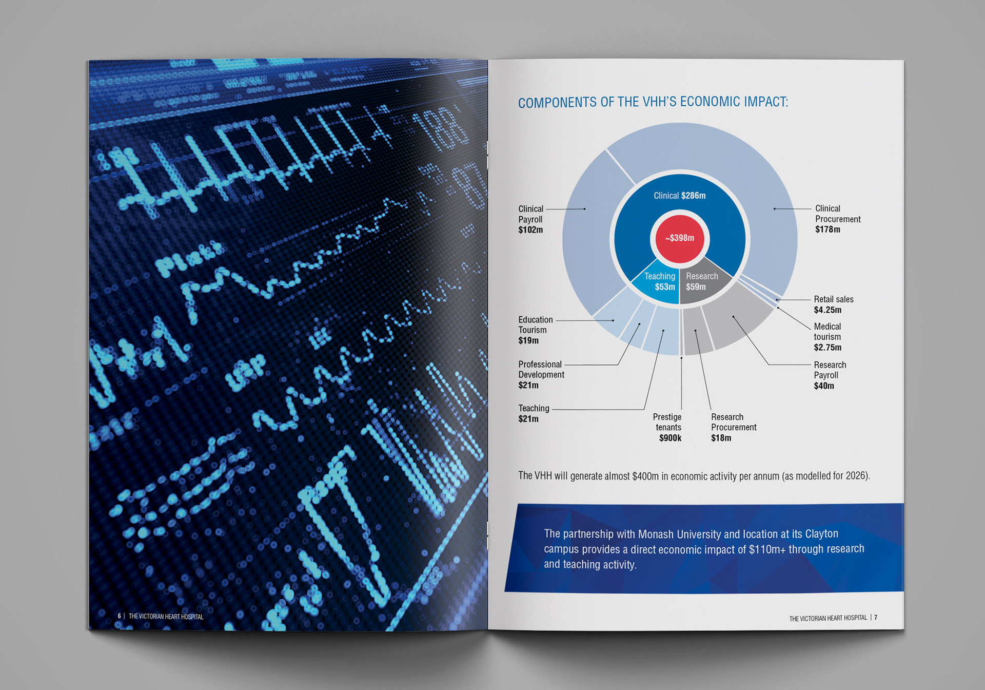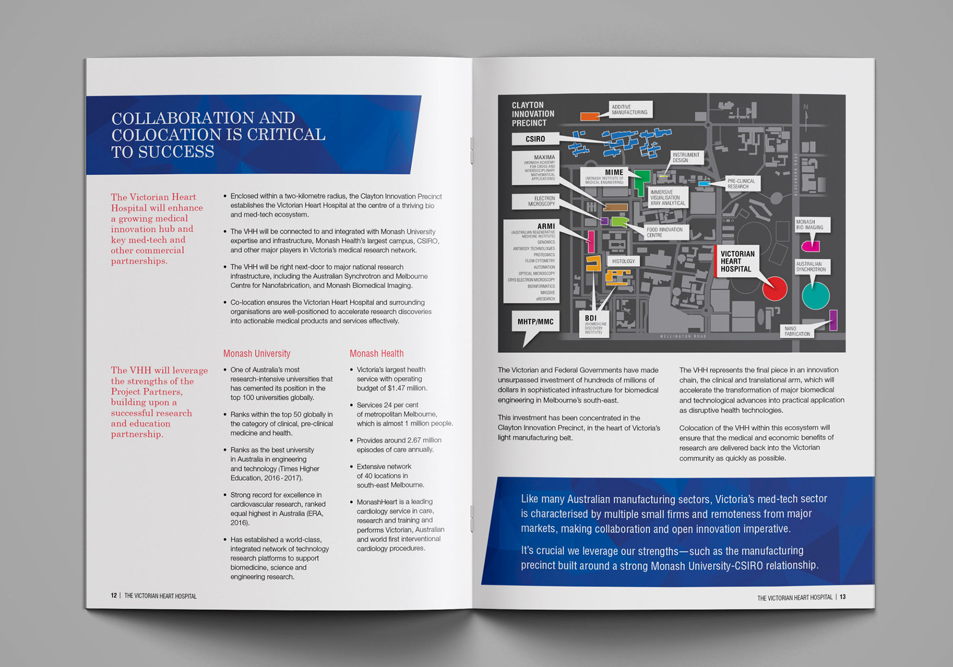 This proposal document was designed for a funding submission to the Victorian state government to secure funding for construction of the Victorian Heart Hospital at the Clayton campus of Monash University.